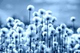 Spring landscape with blooming cotton grass in black and white
