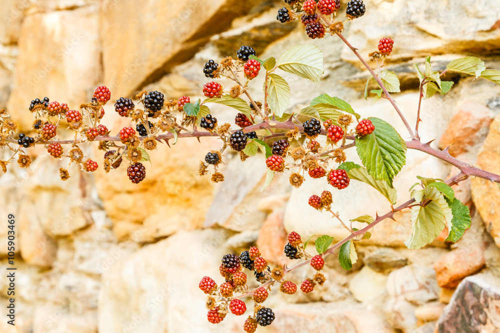 Frutos silvestres de Zarzamora. Rubus ulmifolius.
