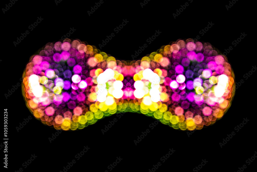 the silhouette of a decorative festive light bulb made of defocused colored circles