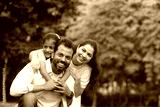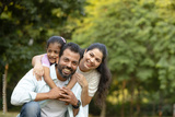 portrait of indian family outdoor candid moment, Joyful Family Piggyback Ride in Nature