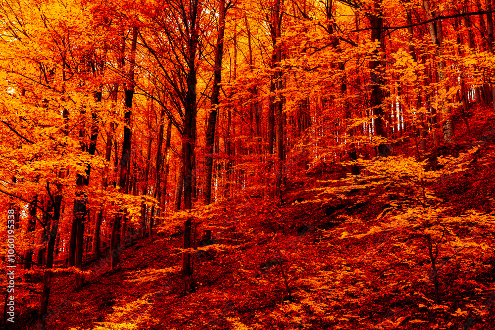 Beautiful autumn beech forest, nature background