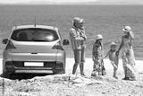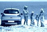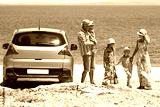 A happy family by car by the sea in nature weekend travel