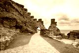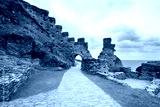 Ruins of Tintagel castle in North Cornwall coast, England