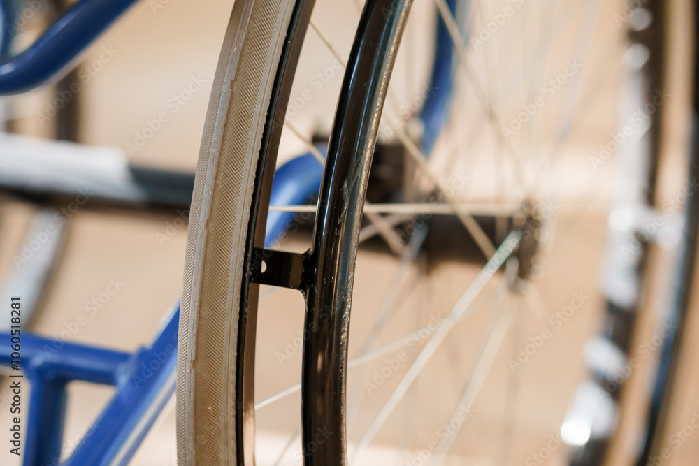 Close-Up of Wheelchair Wheel and Frame in Soft Lighting