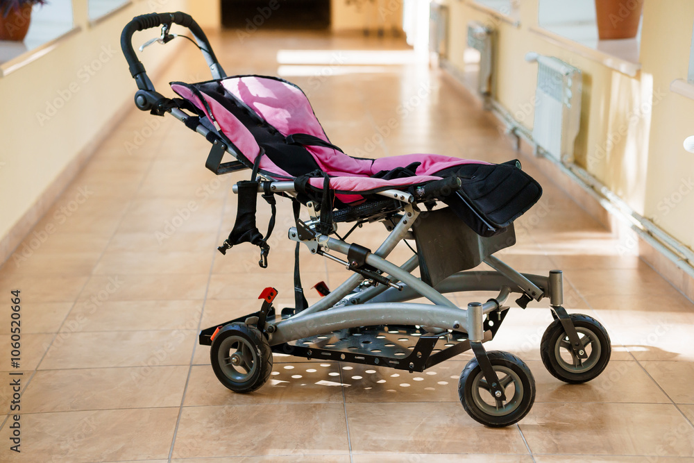 Stylish and Compact Pink Baby Stroller in Modern Indoor Setting