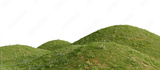 Grassy hill with flowers on a transparent background. 3D rendering.