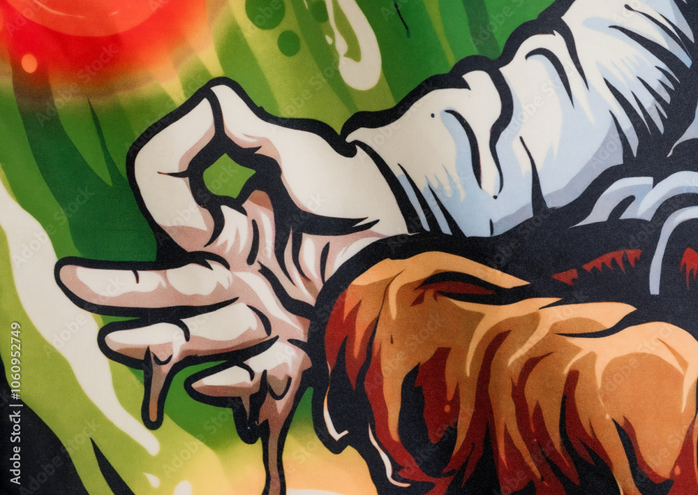 Artistic Depiction of a Hand Gesture with Vibrant Colors and Comic Style Elements