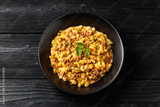 Cheeseburger Pasta with beef, melted cheese, gherkins and pasta
