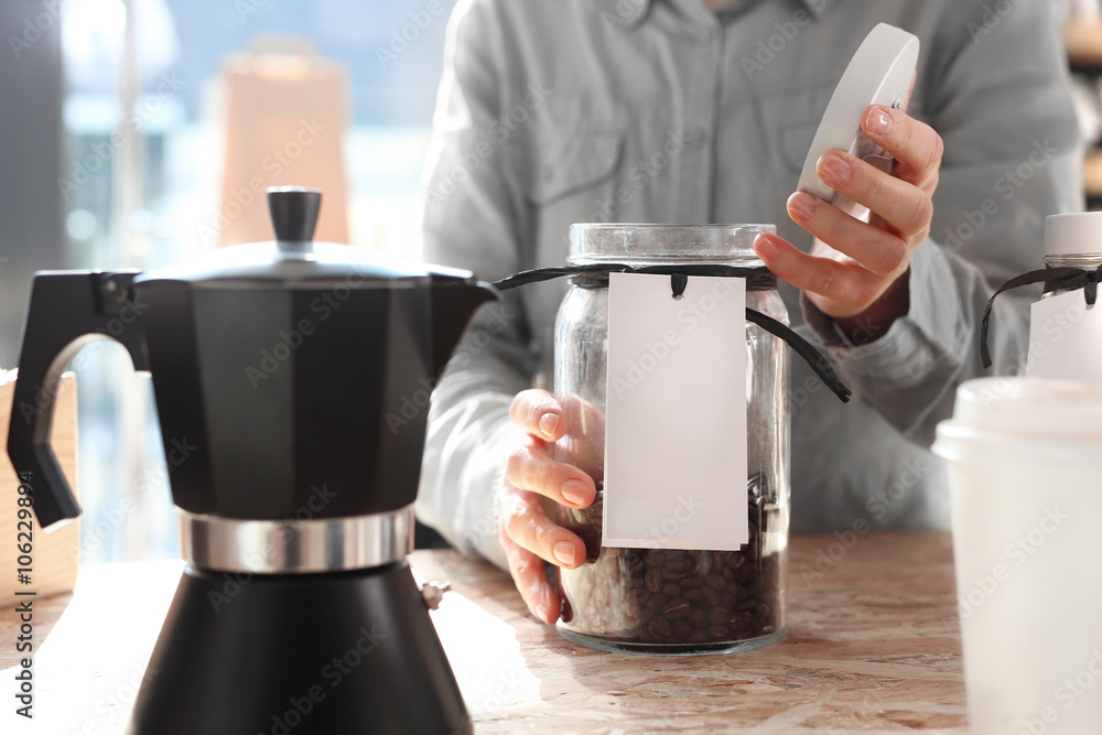 Barista przygotowuje kawę.Kawiarnia , barista wybiera gatunek kawy do zaparzenia w kawiarce ciśnieniowej