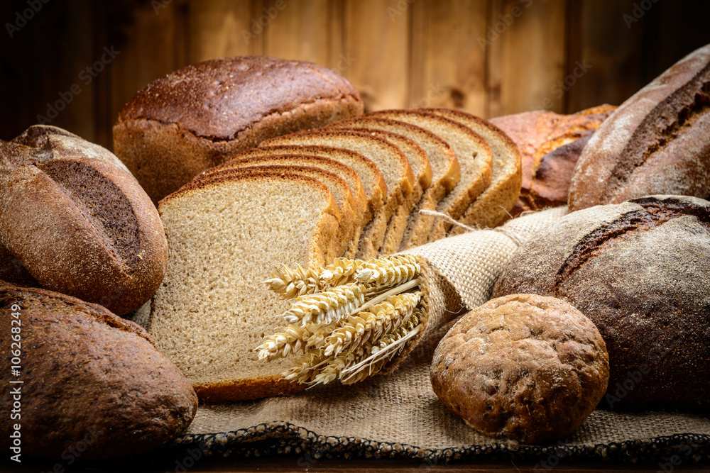 fresh bread and wheat on the wooden