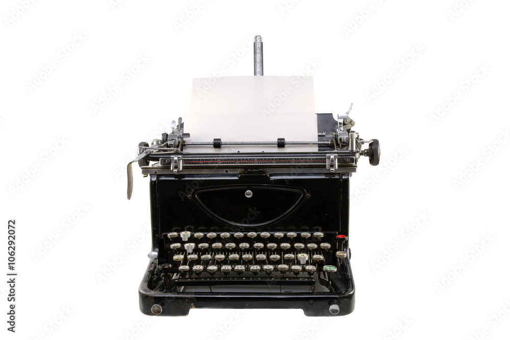 Old germany type writer with paper sheet isolated on white