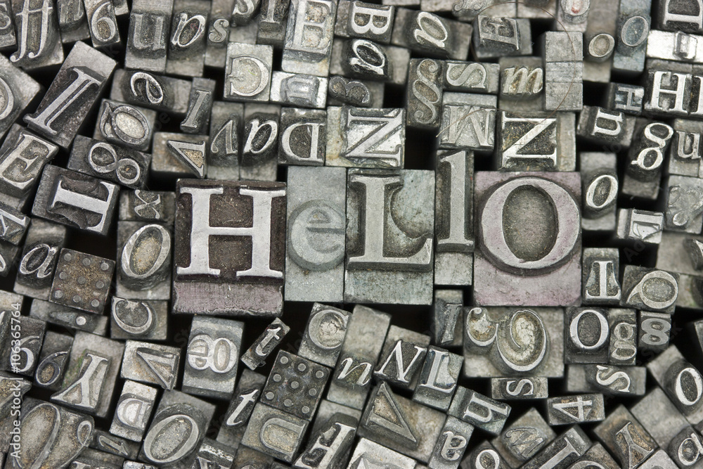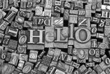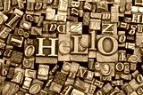 Close up of typeset letters with the word Hello