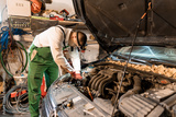 Automotive Technician Performing Engine Repairs in a Garage Setting