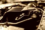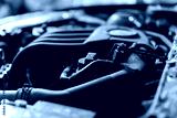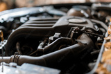 Close-Up of a Modern Automobile Engine with Intricate Components and Textures