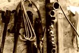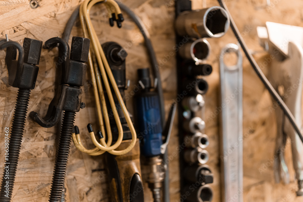 Detailed Display of Various Hand Tools and Equipment on a Workshop Wall