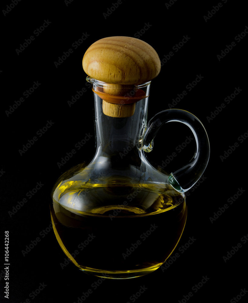 Bottle of olive oil isolated on the black background
