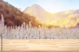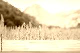 Close up terrace with blurred landscape and sunny day