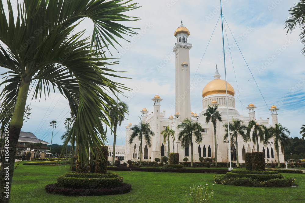 A stunning view of the majestic Sultan Omar Ali Saifuddien Mosque in Brunei during daylight