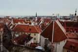Aerial view of Tallinns old town showcasing red rooftops in overcast weather
