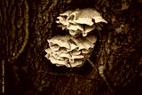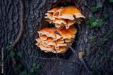 Close-up of a beautiful mushroom growing at the base of a tree in the forest