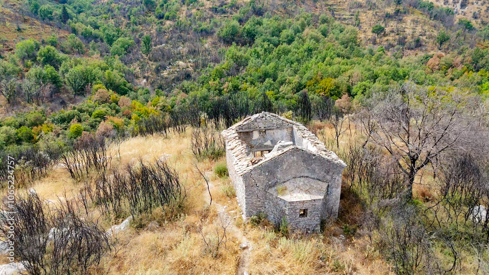 Old Perithia, Kerkyra, Greece. Aerial drone view.
