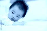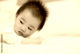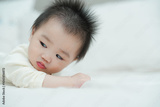 Baby Tummy Time on Soft Cushion with Curious Expression