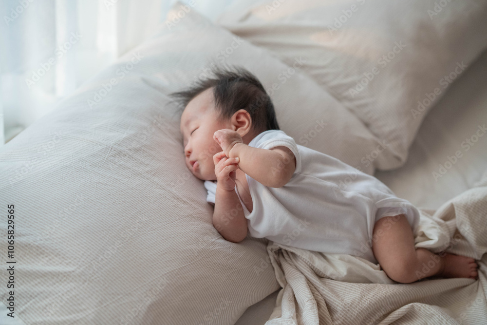 Peaceful Baby Sleeping on Pillow in Soft Morning Light