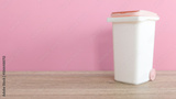 Pink and White Trash Bin or Dustbin with a Pink Background – Stylish Waste Management Solution for Your Space