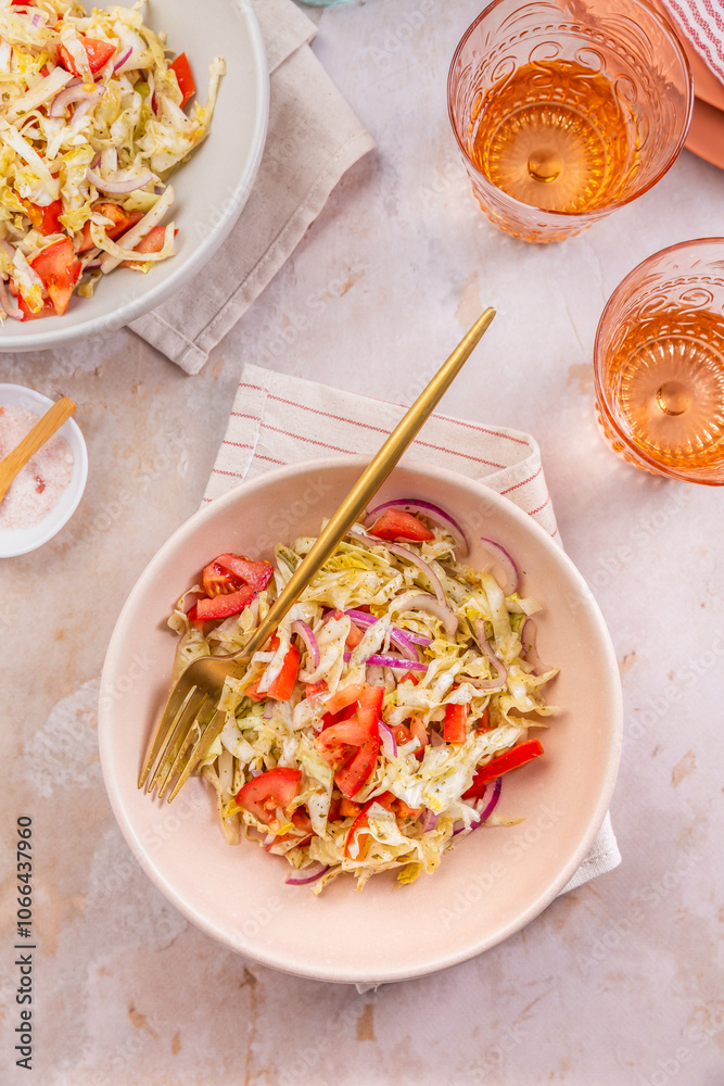 Healthy cabbage salad with tomatoes, homemade winter salad