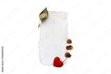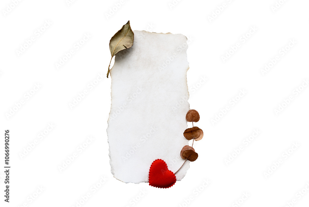 White blank postcard with leaves and heart on transparent background. Concept of gift and congratulations.