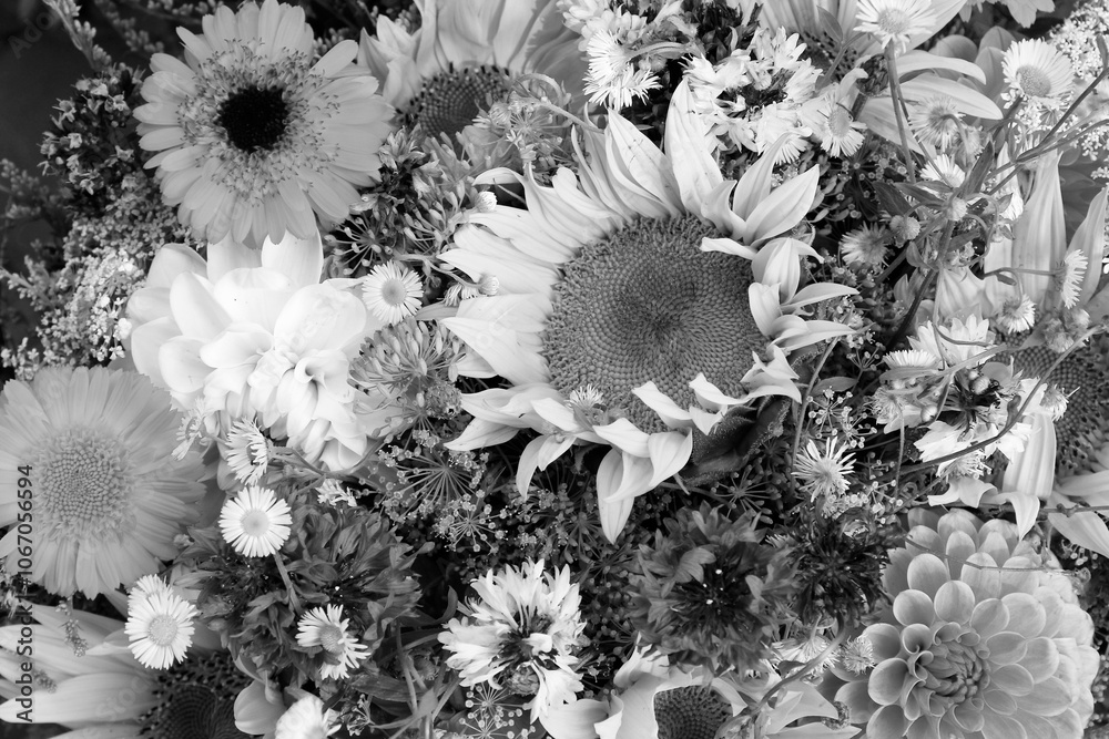 Flowers in a flower shop in Germany. Black and white retro style photo.