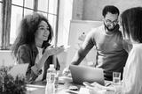 Diverse business people having a team meeting in an office. Group of happy business professionals sitting around a table and having a discussion. They discuss ideas, showcasing teamwork and creativity