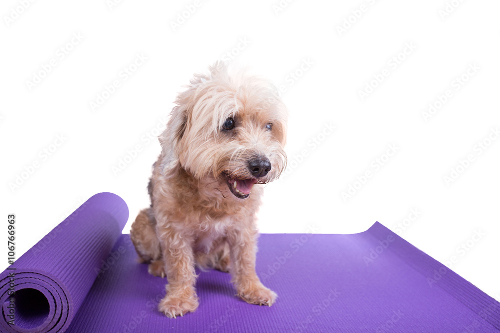 Dog on yoga mat
