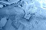 Focus on the center point on the back of computer's motherboard, Mainboard panel background.
