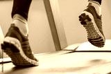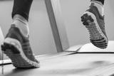 Man running in a gym on a treadmill concept for exercising, fitn