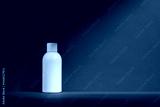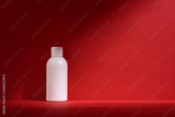 Minimalistic white cosmetic bottle mockup with shadows on a red background