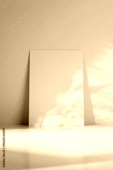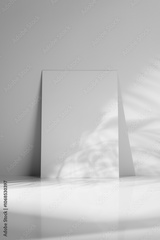Minimalist white or grey background with a blank white poster, creating contrast and shadow play for an abstract, modern composition