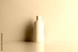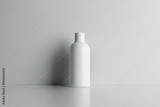Minimalistic white cosmetic bottle mockup with shadows on a gray background