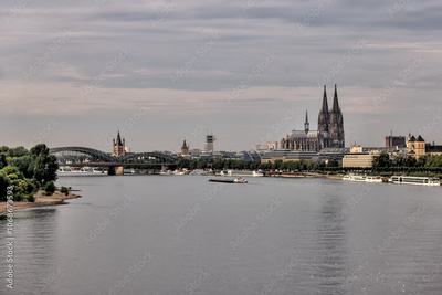 Koln, Germany - July 31, 2024: The Cologne Cathedral as seen from Rheinpark in Cologne, Germany