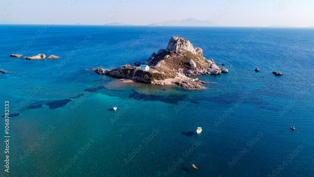 Landscape view of Kastri Island from the Ruins of the Basilica St. Stefanos at Agios Stefanos Beach Kos Island South Aegean Region - Greece