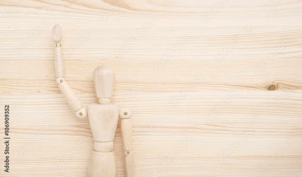 Greeting figure on wooden background