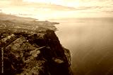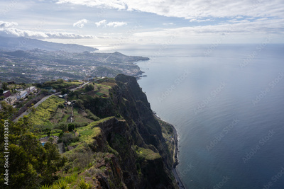 Magnificent vista with very high cliff and coastal city in background, Madeira, Portugal