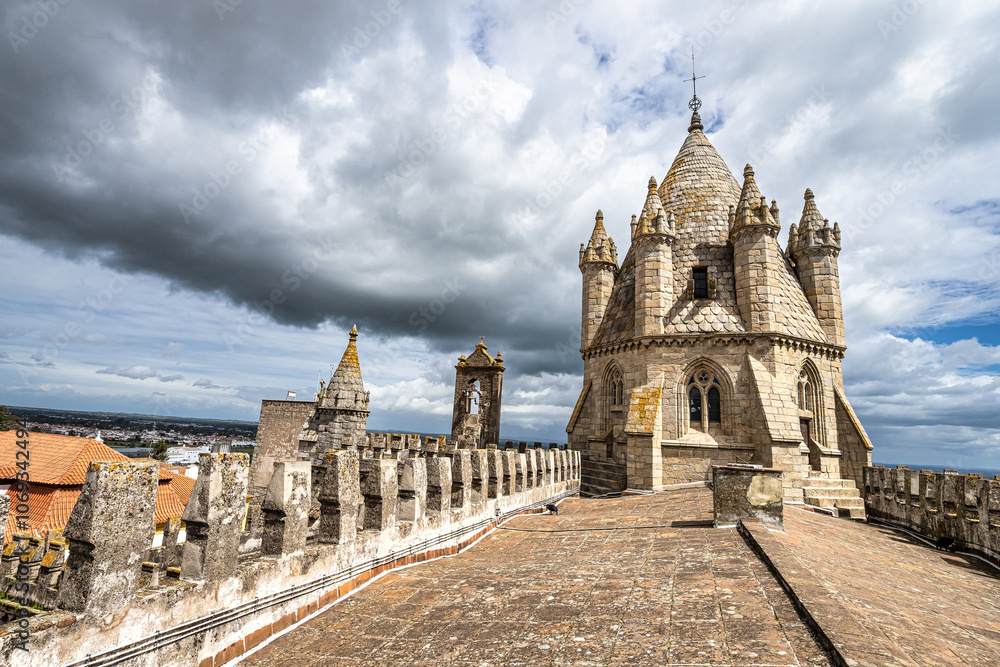 Gothic dome and roofs of Cathedral of Nossa Senhora da Assuncao in Evora. Portugal.