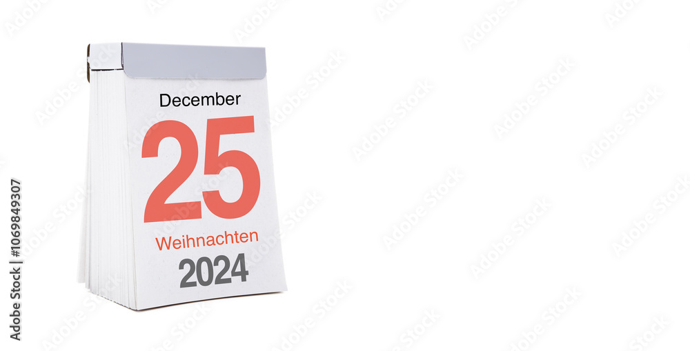 Kalenderblatt Weihnachtsfeiertag vor weissem Hintergrund
