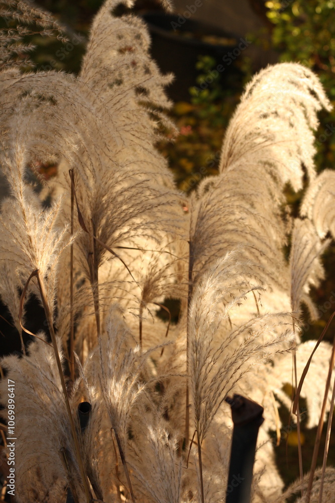 zwiewne, puszyste, falujące, wiatr, odpoczynek, piękne, rośliny, trawy ozdobne, ogród, jesień, kolory, pory roku, klon palmowy, słońce, pogoda, ciepło, liście, kompozycja, klomb, ścieżka, relaks