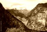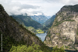 Classic Norwegian view with mountains, trees and fjord, Norway