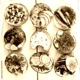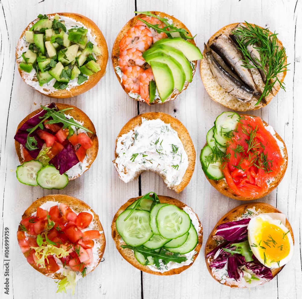 Small sandwiches on wooden background