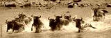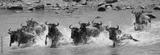 Wildebeests are crossing Mara river. Great Migration. Kenya. Tanzania. Masai Mara National Park. An excellent illustration.