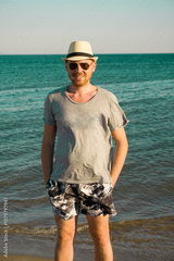 Man Relaxing on the Beach in a Hat and Sunglasses