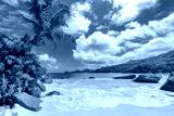 Tropical Sunny beach and coconut palms on Seychelles. Summer vacation and tropical beach concept.